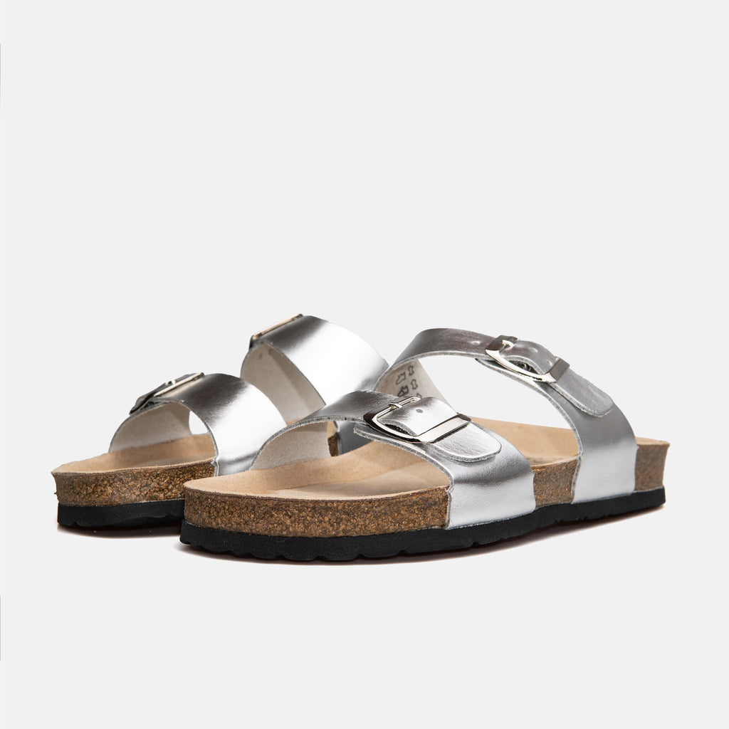U pantoflí je možné individuální a optimální nastavení svršku pomocí kovových přezek.