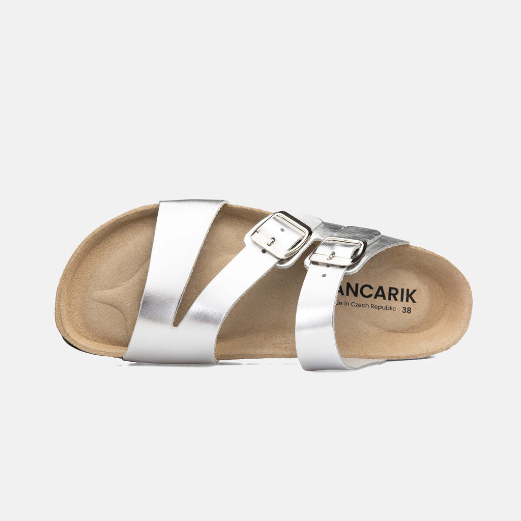 Dámské pantofle Nella s minimalistickým střihem a anatomicky tvarovanou koženou stélkou z přírodního korku a latexu. Kombinace přírodních materiálů zajistí pohodlné nošení po celý den. Boty vyrobené v České republice.