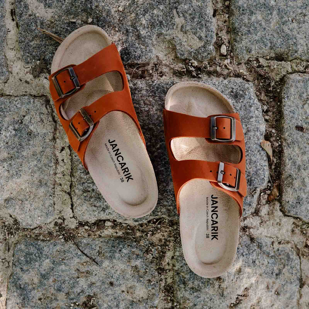 Kožené pantofle s anatomickou zdravotní stélkou jsou vyrobeny pouze z nejkvalitnějších přírodních materiálů. Boty se, včetně korkových stélek, lisují a vyrábí v České republice.