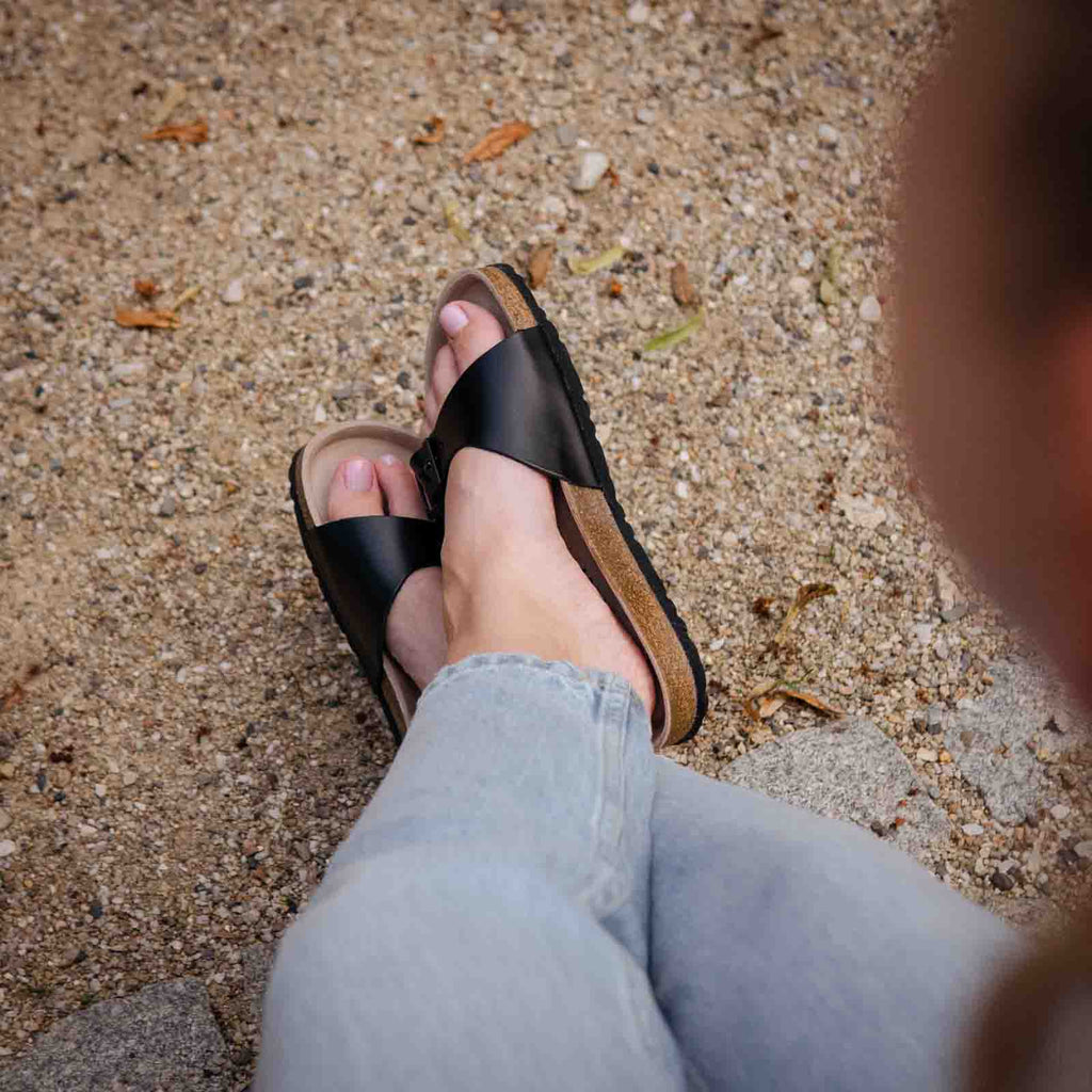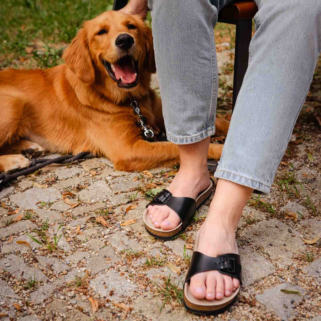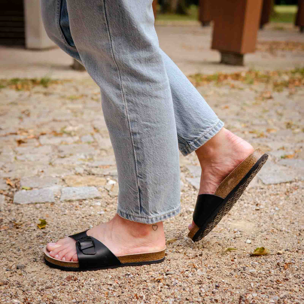 Dámské pantofle Ivy s minimalistickým střihem a anatomicky tvarovanou koženou stélkou z přírodního korku a latexu. Kombinace přírodních materiálů zajistí pohodlné nošení po celý den. Boty vyrobené v České republice.